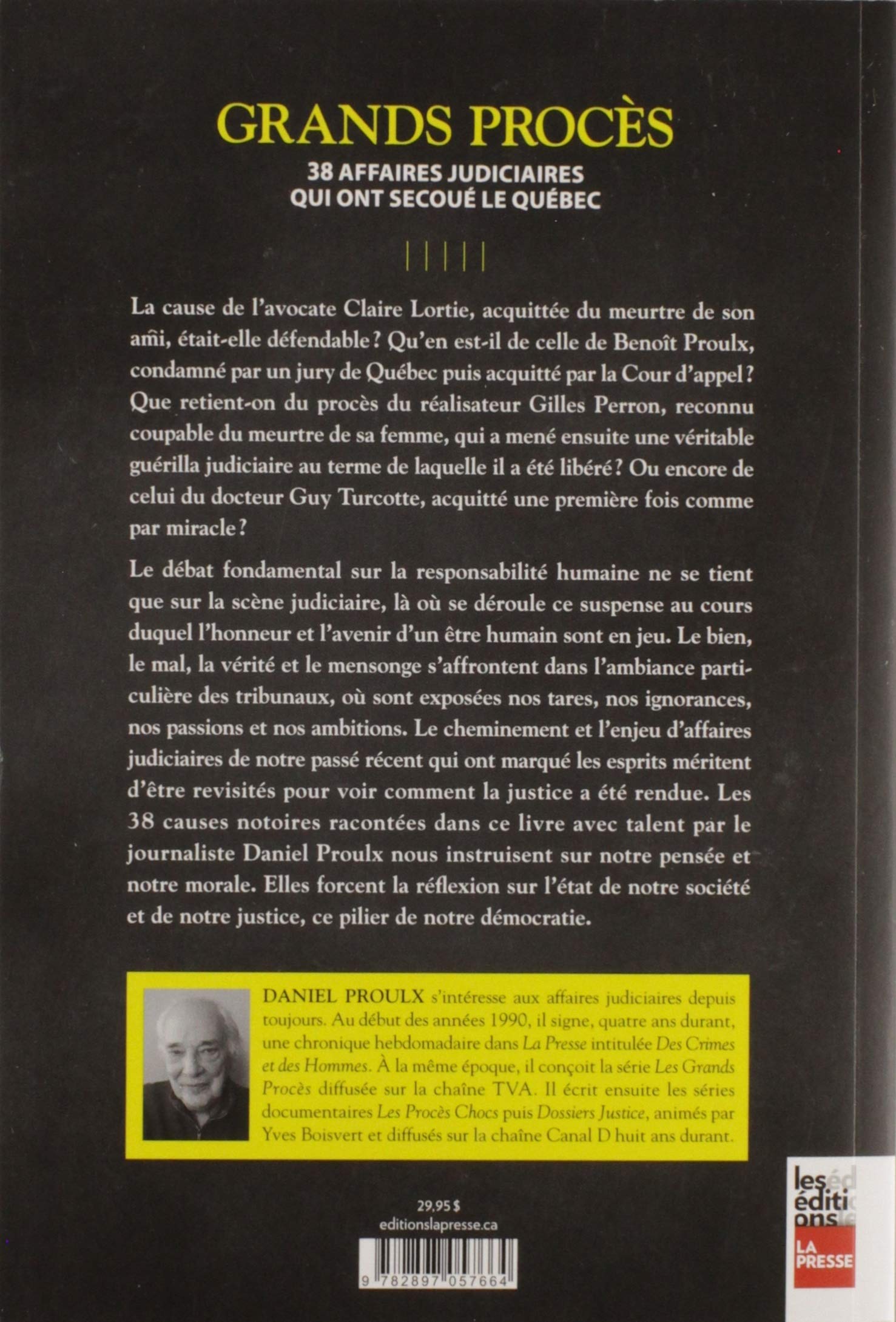 Extrait : GRANDS PROCÈS 38 affaires judiciaires qui ont secoué le Québec de 1965 à aujourd’hui, Daniel Proulx. La Presse éditeur, 2019, 378 pages. Version audio : Vues et Voix éditeur, 2020, Durée : 12 heures 21 minutes. Narrateur : Winston McQuade