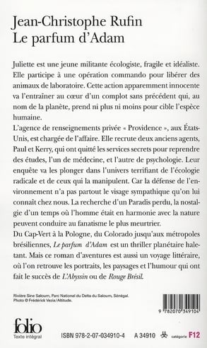 LE PARFUM D’ADAM est un roman d’enquête et d’espionnage basé sur une réalité contemporaine qui va en s’intensifiant avec le temps. Il s’agit du radicalisme écologique et des actions terroristes qui s’ensuivent. Bien qu’il s’agisse d’une fiction, la terrible philosophie qui imprègne l’œuvre est une réalité bien présente qui inquiète les gouvernements et le monde et s’ajoute aux catastrophes climatiques qui grugent la planète.