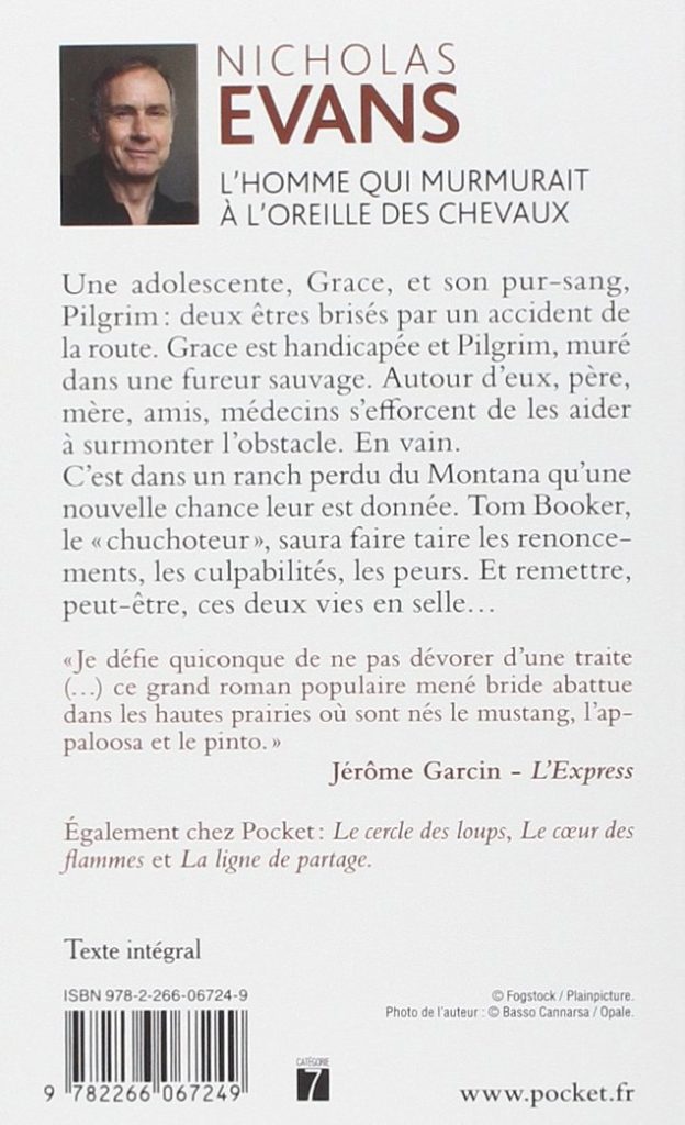 Malgré tout, mon personnage préféré fut Tom Booker, celui qui fait des miracles avec les chevaux. Celui qui murmure à leur oreille. Dans cette histoire, MURMURER comprend beaucoup de choses : parler, communiquer, aimer, comprendre, partager, respecter et plus. J’ai développé beaucoup d’empathie pour Booker qui croyait au départ la cause de Pilgrim désespérée. L’œuvre et la psychologie de personnage m’ont fasciné. C’est ce qui rend pour moi le livre inoubliable.