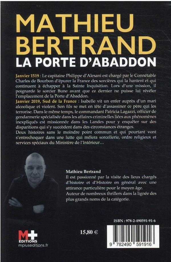 Deux histoires complètement différentes entrent en conjonction pour offrir aux lecteurs/lectrices un mélange de thriller policier, activités paranormales, sorcellerie et même possession. D’une part, au début du XVIe siècle, en France, Le capitaine Philippe d’Alesani a pour mission de débarrasser le pays des sorcières qui échappent toujours à l’inquisition. Un sorcier appelé Bune tente d’ouvrir la porte d’Abaddon, l’Ange exterminateur désigné dans l’Apocalypse.