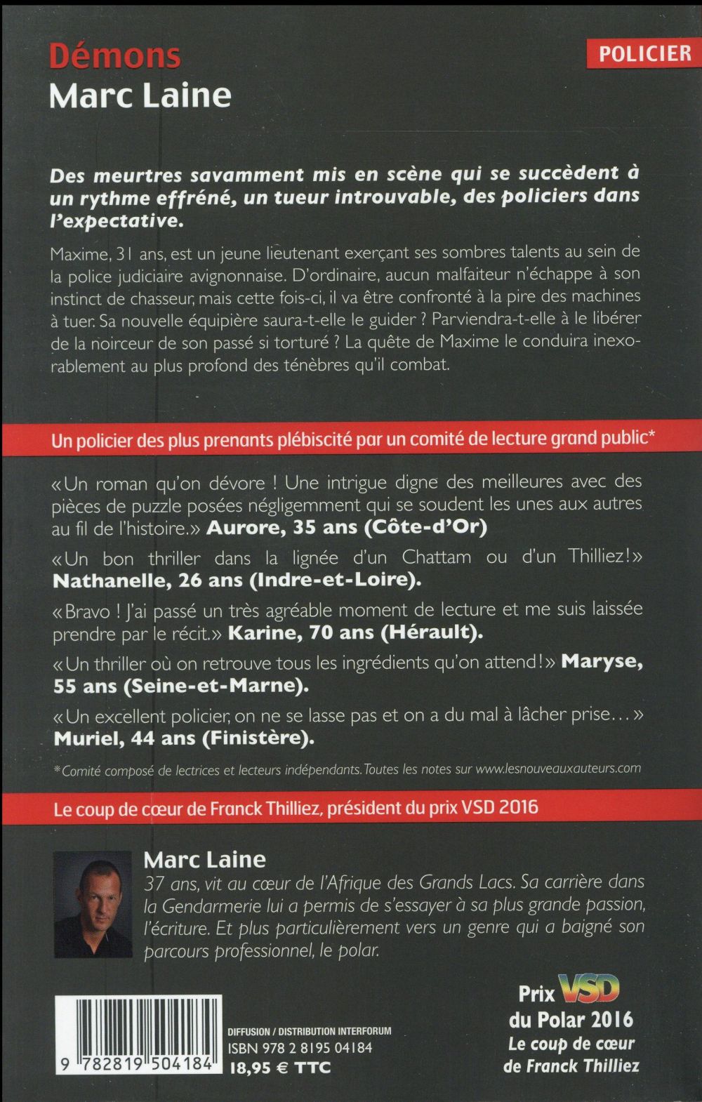 Extrait : DÉMONS, de Marc Laine. Édition de papier : Pocket éditeur, 2018, 576 pages. Format numérique : Les Nouveaux Auteurs éditeur, 2016, 517 pages. Version audio : Audible studio éditeur, 2017. Durée d’écoute : 14 heures 5 minutes. Narrateur : Hervé Carrasco.