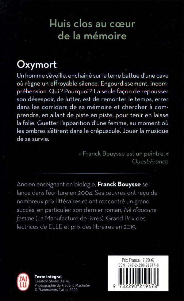 D’abord, vous pouvez vous fier au quatrième de couverture. Il reflète très bien l’histoire qui, du reste est très limitée quant à son développement. OXYMORE est un huis-clos oppressant et anxiogène quant à ce qui se passe dans la cave et à l’état d’esprit du prisonnier Louis Forell. Le roman est assez court et est extrêmement ventilé, donc facile, voire agréable à lire.